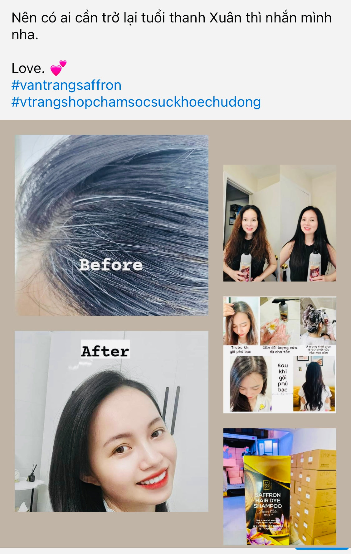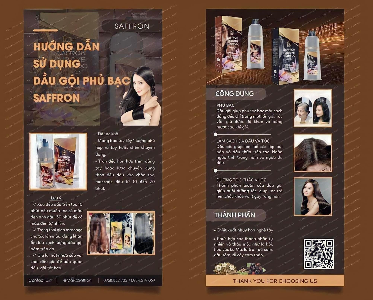 Tóc bạc sớm làm cho người ta cảm thấy tự ti, mặc cảm, cuộc sống nhàm chán thiếu sức sống, kém thu hút trong con mắt của những người xung quanh…Tóc bạc sớm phải thường xuyên nhuộm tóc, kích ứng, rụng tóc, khô xơ, lo sợ ung thư da đầu… Dầu gội phủ bạc Saffron là loại duy nhất và đầu tiên trên thế giới có chứa 100% thành phần thảo dược thiên nhiên nên cực kỳ an toàn. Y học hiện đại cũng thừa nhận Saffron có thành phần chống oxy hóa mạnh và kháng viêm hiệu quả, với 2 màu sắc Đen, Nâu.